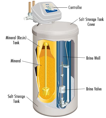 Resin beads: Resin beads are tiny little beads that hard minerals bind to. There’s thousands of them located inside of your water softener tank.